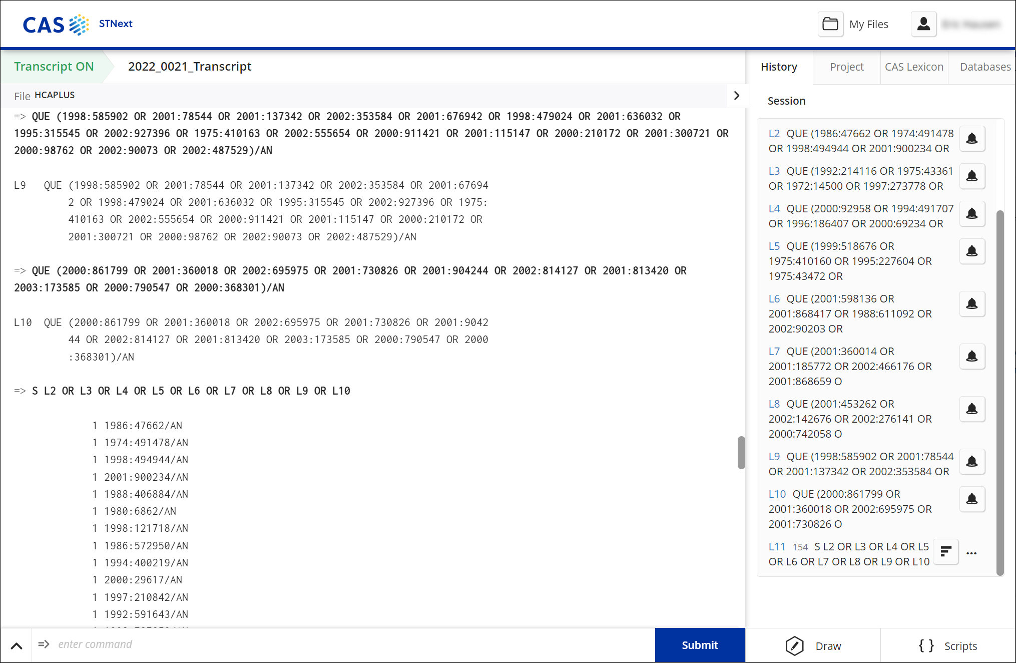 This feature analyzes the title, abstract, claims, and CAS indexing for your patent and uses four different algorithm streams including machine learning and natural language processing to find similar relevant patents and non-patent literature. These documents will all have priority dates before that of your target patent, representing the state of the art before your patent established its priority. The results set will consist of Accession Numbers for up to 100 patent and 100 non-patent literature documents saved as one L-number.
