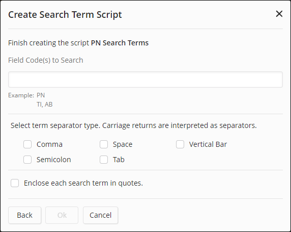 This release also includes capability to create a script from a list of terms. Note: See Creating a Search Script from an Imported List of Terms for more information.